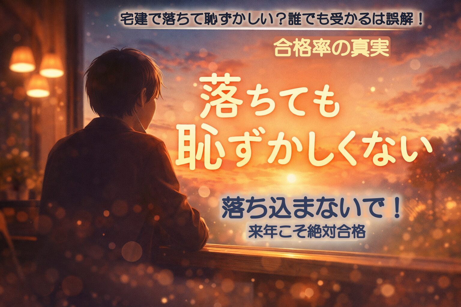 「宅建に落ちて恥ずかしい」と一人で悩み、ネットの「誰でも受かる」という言葉に傷ついていませんか?しかし、合格率10%台後半の難関試験に挑むこと自体が素晴らしく、決して恥じることではありません。