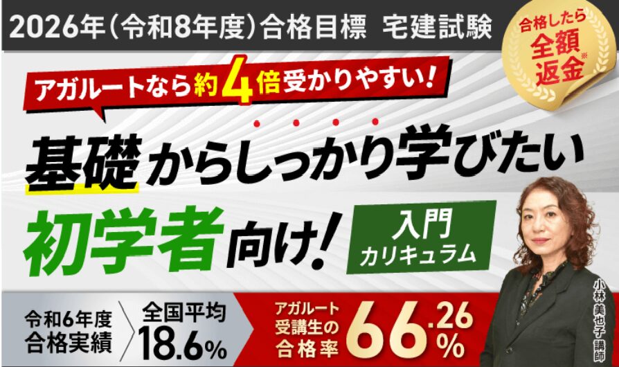 約6万円台〜 | 合格で全額返金 高い合格率 | 本気で合格したい人 返金特典を狙いたい人 |