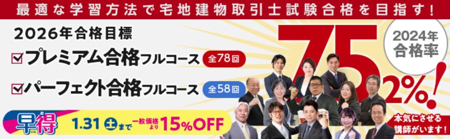 | 合格実績 | 令和5年度合格率64.8%(全国平均の3.77倍)※有料受講生合否アンケート集計結果 |